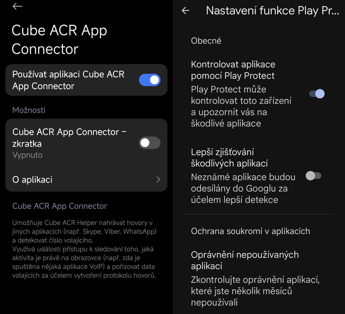 Mě na Androidu 15 sem tam nějaké zabezpečení shodilo ten Cube ACR App Connector, ale vždy se o tom objevila notifikace. Zrušil jsem Lepší zjišťování škodlivých aplikací a zatím se to nestalo.