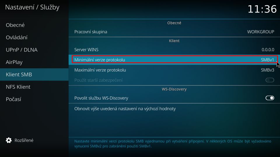Zkusils nastavit jako minimální verzi protokolu SMBv1?
