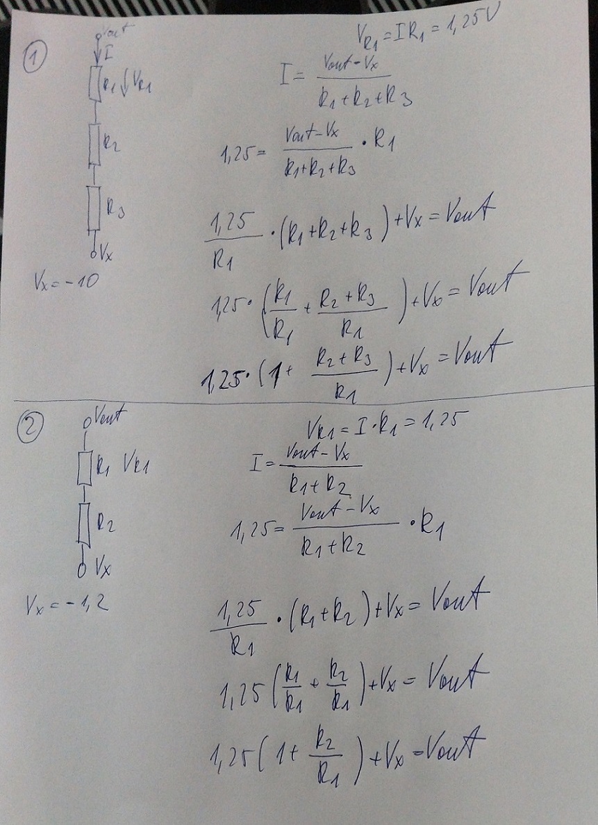 2- je odvodený vzorec keď tých -10V stabilizujeme na -1.2V