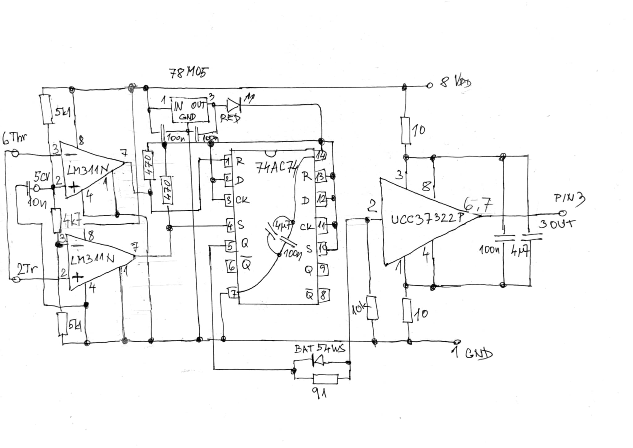 Při 5V se výrazně zkracuje doba náběhu a pádu u 74AC74 a tento proud násobně roste. To ale není všechno, vlivem rychlého přepínání dochází ke křížovému vedení uvnitř 74AC74 a ke zvonění, kterého je těžší se zbavit, protože kostra napájení je spojená s kostrou komparátorů.