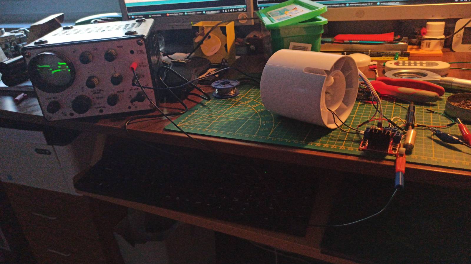 Na rychlo jsem spíchnul střídač z FET totemu a sinus to není ani omylem (je vidět na toto). Ventilátor sice běží vinutí má sotva vlažné (nejdříve jsem zkoušel rozebrané) můstek má tak 35 - 40°C.