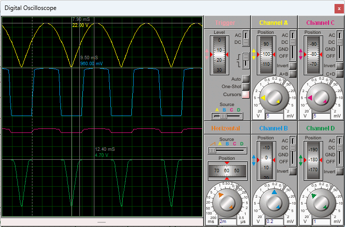 Průběh na D3 je ukázán zelenou křivkou na screenech z osciloskopu - pokud se nepletu.