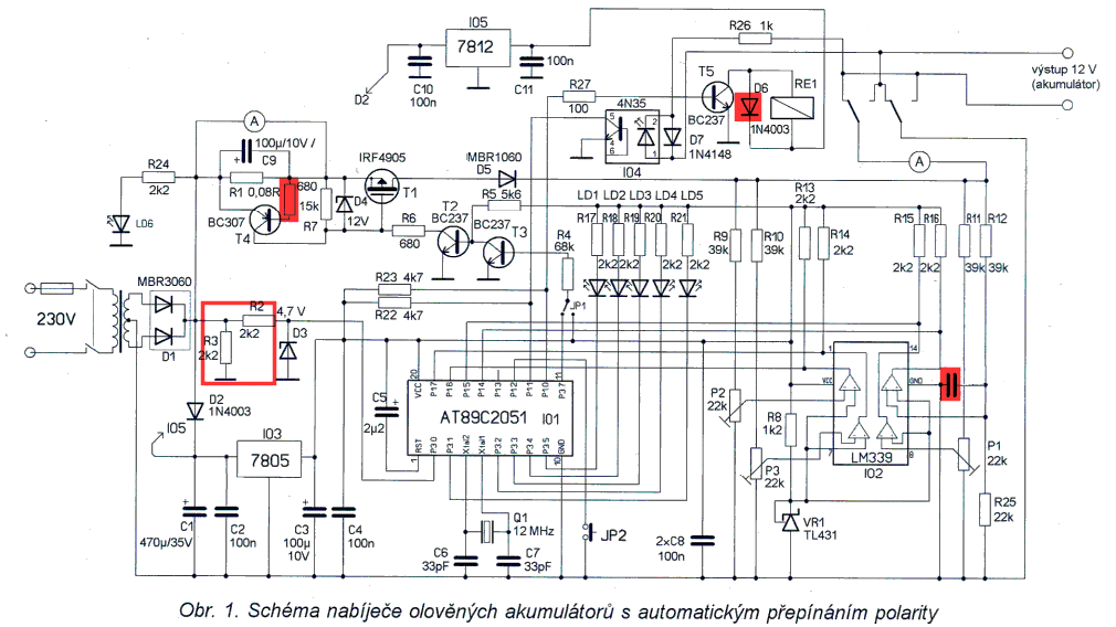 Program vykazuje některé funkční nedostatky. Kromě toho, že je oproti popisu opačné pořadí rozsvícení LD1 až LD4 (nutno zohlednit při konstrukci čelního panelu), je jedním z nich např. spínání/rozpínání relé v každém nabíjecím cyklu. I když tyto impulzy mají jen cca 0.5ms, a relé nestihne reagovat, spínací tranzistor T5 o nich však "moc dobře ví".