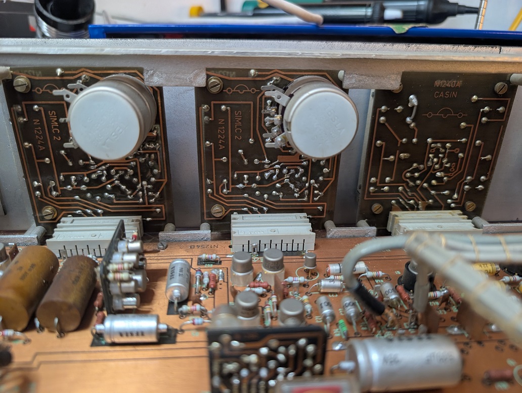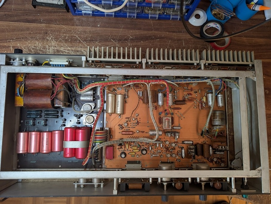 A už fungují obě reprobedny. Až na pár vadných kondenzátoru, zoxidovaných kontaktu a chrcicich potenciometru, které jsem rozebral a vyčistil všechny, tam naštěstí žádné větší závady nebyly. Někdo měnil jednu dvojici výkonových tranzistorů v jedné středové větví. DPS jsou oboustranné.