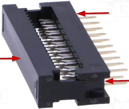 Myšleno konektor zapájený v DPS, jedna čelist bude tlačit TOP konektoru, druhá čelist bude ze strany BOTTOM DPS.
