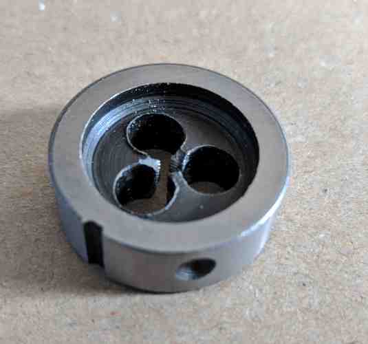 Ešte by som sa spýtal jednu asi zbytočnú a hlúpu otázku (áno, existujú aj hlúpe otázky). Môže u niektorých očiek záležať na tom, ktorou stranou sa priloží k tyčke, na ktorú sa reže závit? To HSS očko je ploché z oboch strán, akurát na jednej strane sú vyrité údaje. To očko z Lidlu má jednu stranu (plochu) "zahĺbenú" do telesa, ale do vratidla sa dá upevniť aj-aj. Takže účelu toho "vsadenia" nerozumiem. Prikladám fotky.