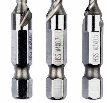 Nejhorší na tom je, že na vrtání jsou potřeba podstatně větší otáčky než na řezání závitů. Určitě u M3 a nejspíš i M4 a M5. Pak si vyber, buď to nevrtá a nebo zlomíš závitník. A dát ten M3 bit do magnetickýho držáku elektrickýho šroubováku, kterej má pár otáček a kde se bit všeljak kejklá, to mu taky nepřidá.