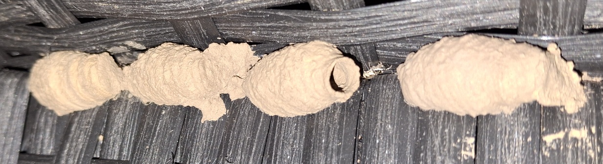 Díry zalepujou i hrnčířky a malé samotářské včely - zednice. Na rozdíl od vos (hrnčířek a kutilek) nejsou zednice dravé. Jedna zednice nám furt lezla do zádlabu pro zámek na chatě, když bylo otevřeno. Tak uvidíme jestli se něco vyklube.
