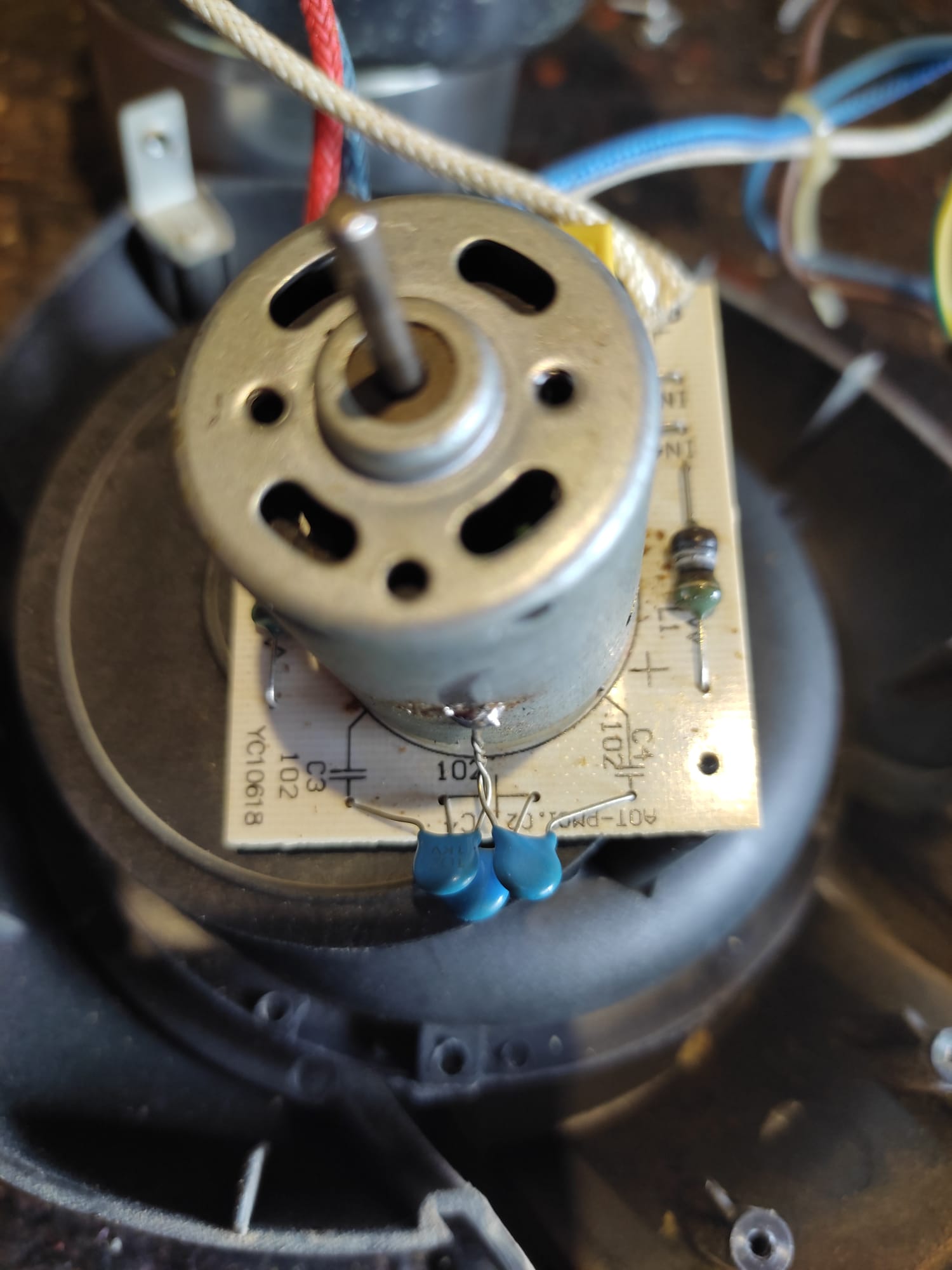 Takže pro zkoušku překlemuji ten stříbrný váleček (myslel jsem že je to kondík), a tu spálenou L1 a musí se motorek rozběhnout?