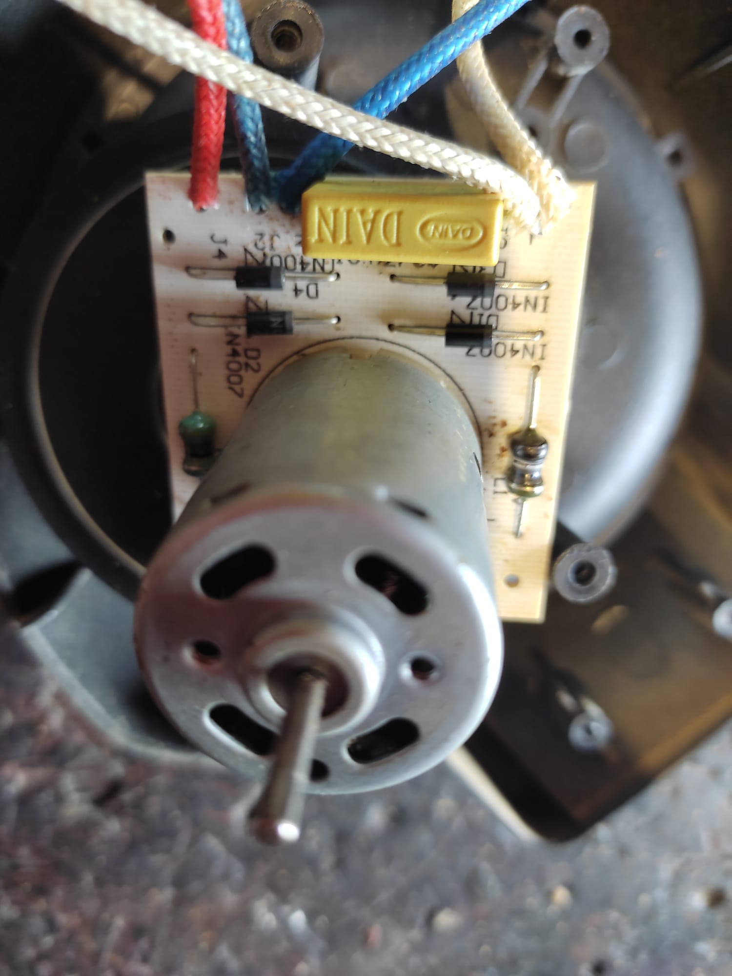 Takéto výrobky fungujú mnohokrát v sériovom zapojení... výhrevná špirála s motorom otáčania či ventilátorom... + tepelná poistka... všetko treba postupne overiť/pomerať..