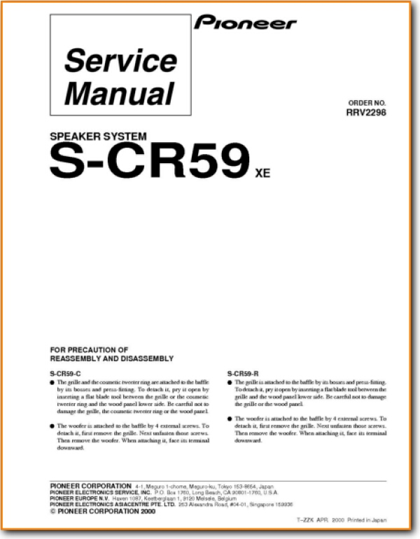 Reproduktory Pioneer S-CR59 mají obvykle plastovou nebo dřevotřískovou skříň a zadní díl (zadní kryt) bývá pevně přilepen nebo napevno zasazen do konstrukce – často bez šroubů.