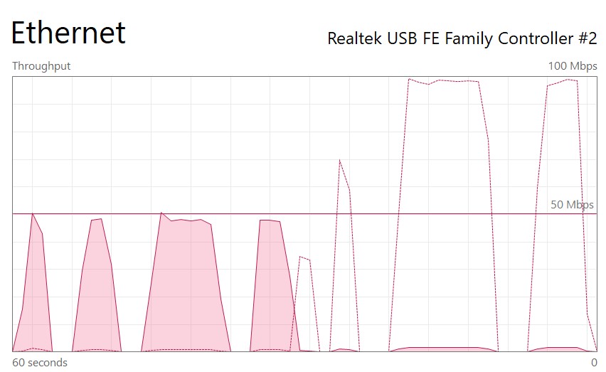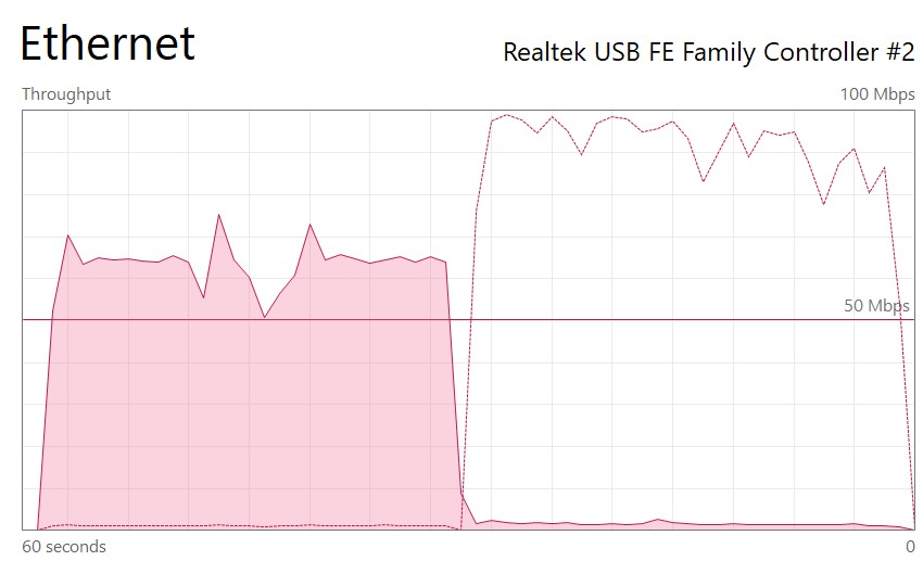 1) připojení napřímo bez routeru (bez výrazných propadů)