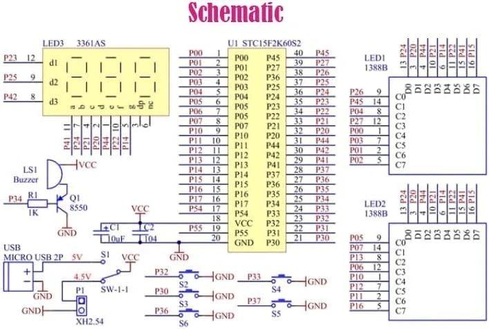 A čo by si k tej schéme ešte chcel? Vnútorné zapojenie displejov a procesora? Tá schéma je kompletná. Podrobnejšia snáď už ani byť nemôže.