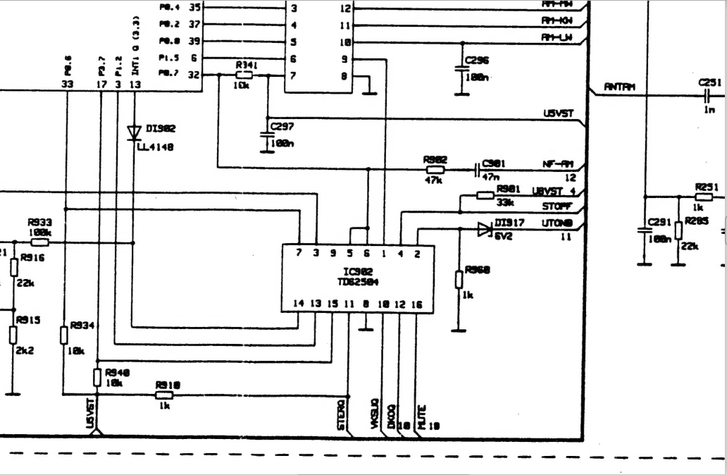 V zapojeni radia je jeste obvod TDA1579 pro dopravni zpravy, ktery pinem 1 a 2 ridi