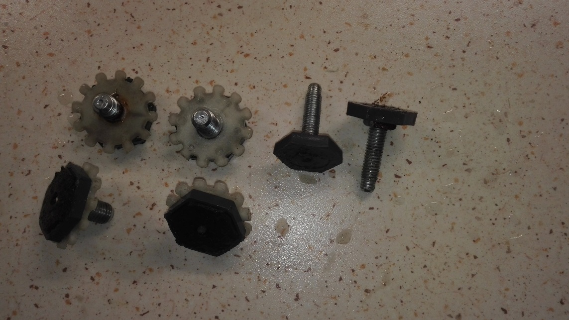 Našel jsem. Ty dvě malé mají závit M6. Jinak M8.