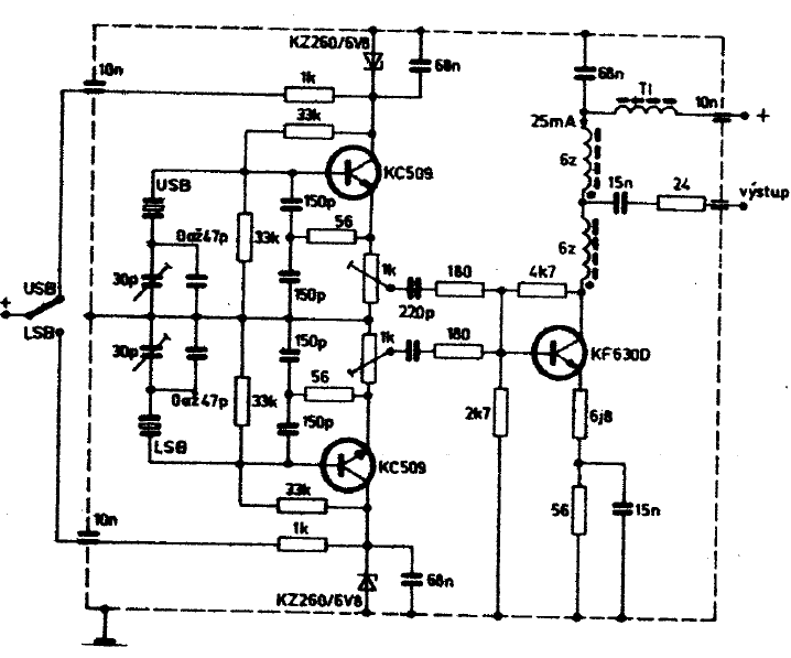 BFO - dolaďovacie kondenzátory som dal do série s kryštálmi, ukázalo sa to ako správna cesta, ale ani potom som sa nevedel dostať na správne frekvencie, ani s prídavnými kondenzátormi paralelne k trimrom. Frekvencia USB oscilátora pri pretáčaní trimra "preskakovala" a nedostal som sa, kam bolo treba. Nepátral som po príčinách a postavil som si BFO podľa schémy výššie (prijímač v AR88/5). Fungovalo to na prvýkrát bez problémov pre USB aj LSB. Takže som BFO-čka na doske prestaval znovu podľa tejto schémy, včetne Zenerových diód. Možno to prídá trochu šumu, ale to asi u toho prijímača nemá zmysel riešiť. Takže BFO sú hotové a naladené. Zažiaľ som neuzemnil puzdra kryštálov. Otázka: pájkovanie puzdier kryštálov je riziková operácia? Treba skrátiť čas alebo letovať len na určité miesto na puzdre atď.?