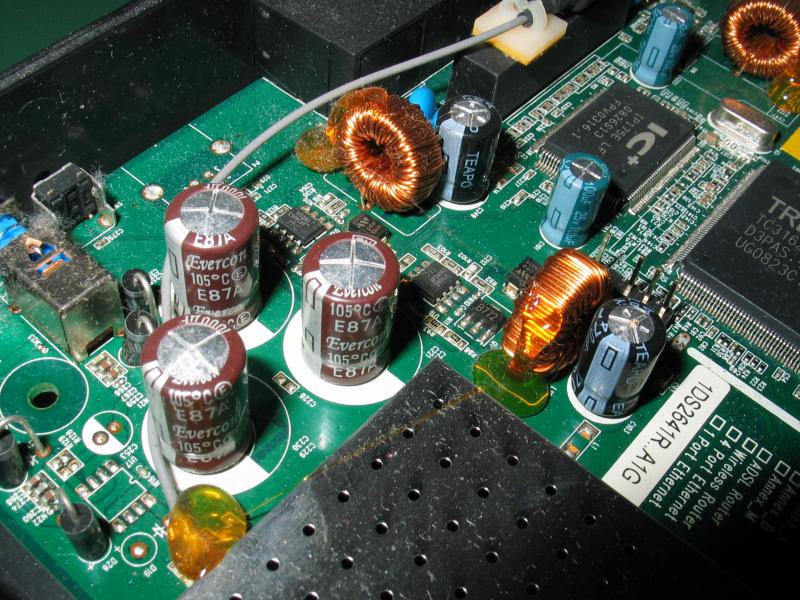 Zaujimave je, ze nedavno som rozoberal jeden presne rovnaky router, tiez verzia B1, len trochu novsi (na stitku novsia verzia firmware). Do minuleho roku bol v prevadzke. Tam boli komplet vsetko TAICONy - a vsetky OK.