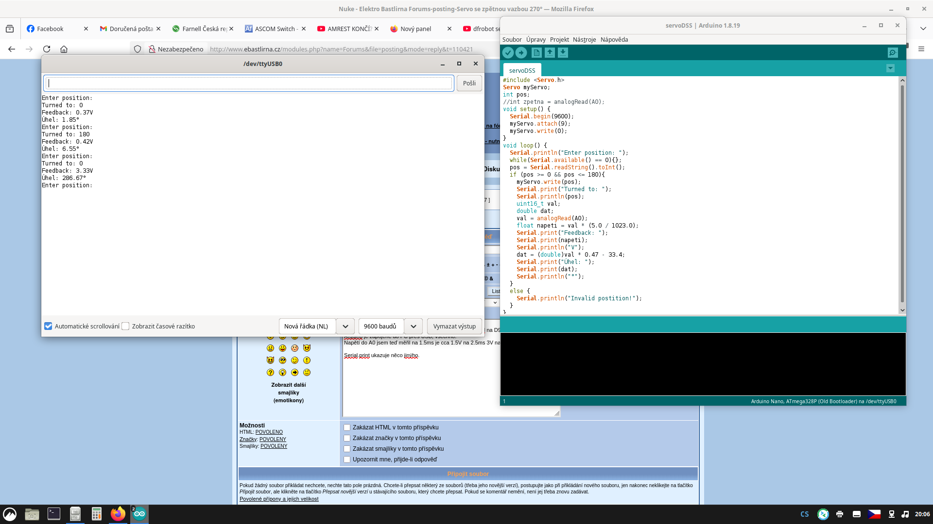 Když to udělá tak jak jsem upravil ten příklad naposledy výše tak by měl výslednou pozici vidět po chvíli správně až se servo na tu pozici nastaví tak by hodnota vrácená AnalogRead() měla odpovídat správné žádané poloze.