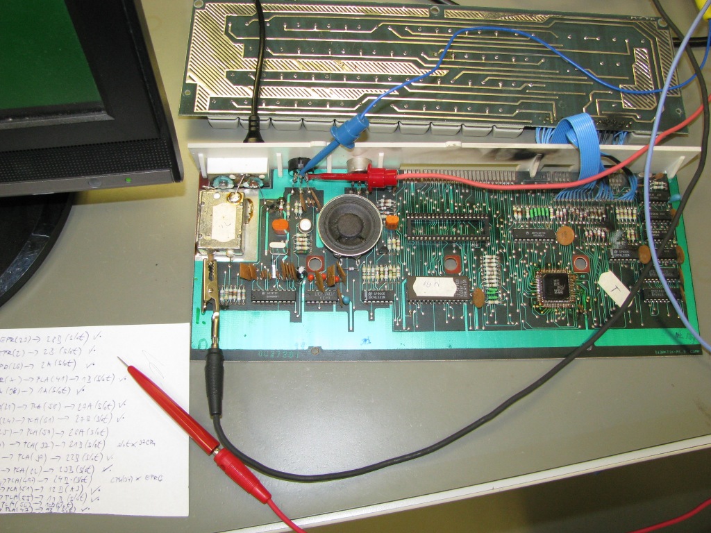 Téměř všechny odpory mají hodnoty shodné s papírovými, jen minimum je ovlivněné tím, že se měří zapájené (ve stroji bez napájení, jak jinak). Těch několik prověřím opakovaně (později). EPROM by šla odřadit přivedením HIGH na 2/IC9, jenže já vhodný slotový konektor stejně po ruce nemám a ani se mi v současné době nechce žádnou vrabčí provizorní redukci na externí patici EPROM drátovat.