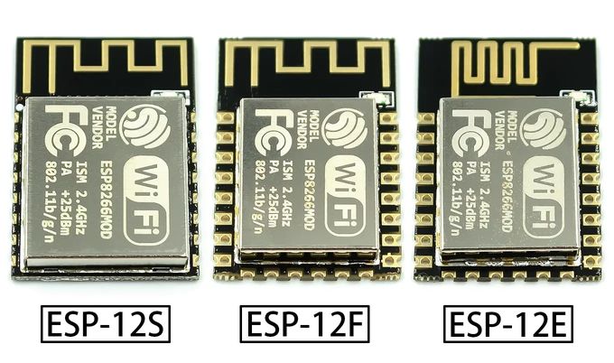 Na moduloch možno vidieť vygravírované označenie ESP8266MOD, alebo ESP12 s príslušnou príponou, ďalej logo Espressif, Ai-Thinker, alebo aj kdejaké iné.