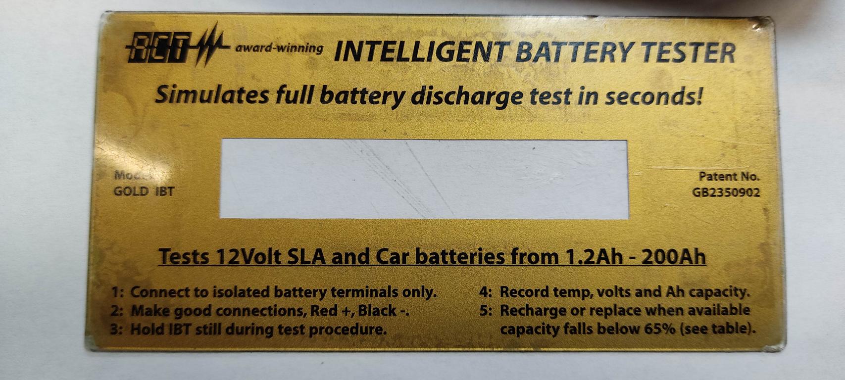 Z popisu na webu: Během šesti vteřin dokáže pomocí patentované technologie změřit zbytkovou kapacitu akumulátoru, kterou potom zobrazí na podsvíceném LCD displeji. V průběhu měření je zobrazeno i napětí baterie a teplota.