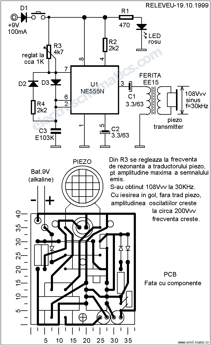Mám schovaná dvě zapojení, ale nakonec nedošlo na jejich odzkoušení. Než došlo na realizaci, pes nebyl. Třeba by byly lepší než to co máš, ale nedokážu to posoudit. To druhé bude mít nejspíš malý výkon, první vypadá líp. Jen to napájení by asi chtělo něco lepšího než malou 9V baterku.