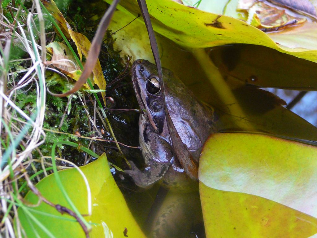Dneska na mě v jezírku koukal z pod leknínu zase skokan, tentokrát hnědej. Při pohledu z druhé strany jsem ale zjistila, že nemá pravé oko, takže je to pořád ten samej, před dvěma měsícema vypranej v Savu. Shocked