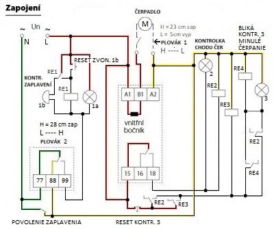 Až nyní jsem si všiml , že jsi vyřadil blokaci čerpadla při zaplavení , a nahradil to vypínačem , takže přeloženo na obsluhu . Pokud si chceš ponechat tuto možnost , tak to nech původní a vypinačem přemosti plovák .