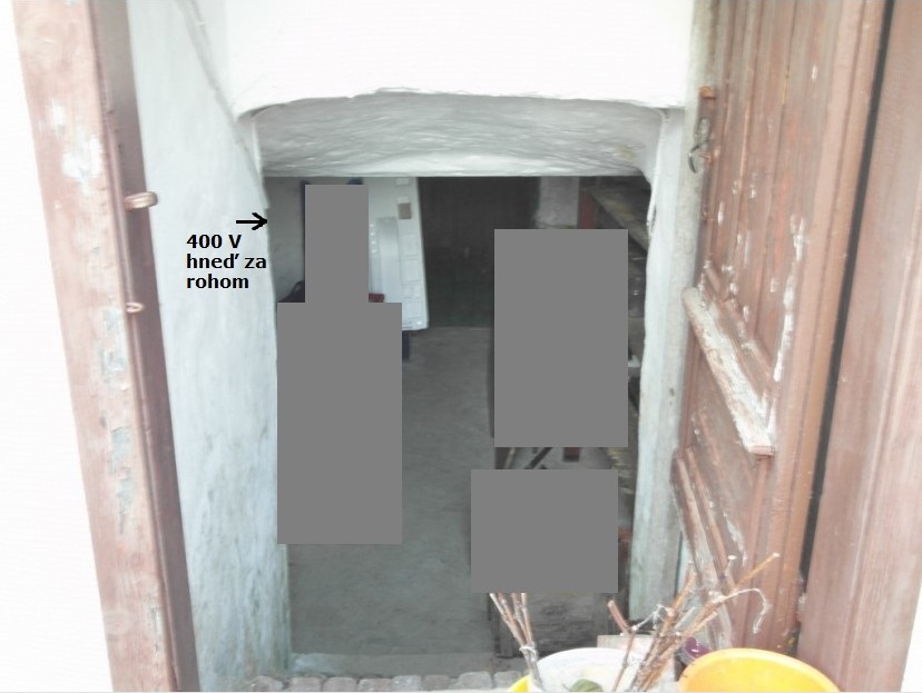 Šachta je na opačnej strane miestnosti pivnice, než je prívod 400V (400V hneď za Ľ rohom ako je vyznačené na obr. pivnice, šachta v rohu náprotivnej steny doľava)