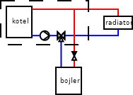 Zapomněl jsem napsat, jak to dopadlo. Nakonec jsem tam žádné ventily nedával, jen klapku (je potřeba vybrat typ s malým odporem, třeba gravitační, ne zpětné ventily s pružinou, jaké se dávají na přívod vody do bojleru). Pro jistotu jsem vedle bojleru udělal tu smyčku, která zároveň slouží jako nejnižší místo soustavy pro vypouštění. Na radiátorech mám termohlavice. Výkon oběhového čerpadla u kotle jsem nastavil tak, že při zapnutí topení, kdy jsou termohlavice otevřené, ohřívající se voda teče jen radiátory, do bojleru na konci trubek se nedotlačí. Jak se byt vytopí a hlavice se přivřou, začne do bojleru téct rovnou horká voda.