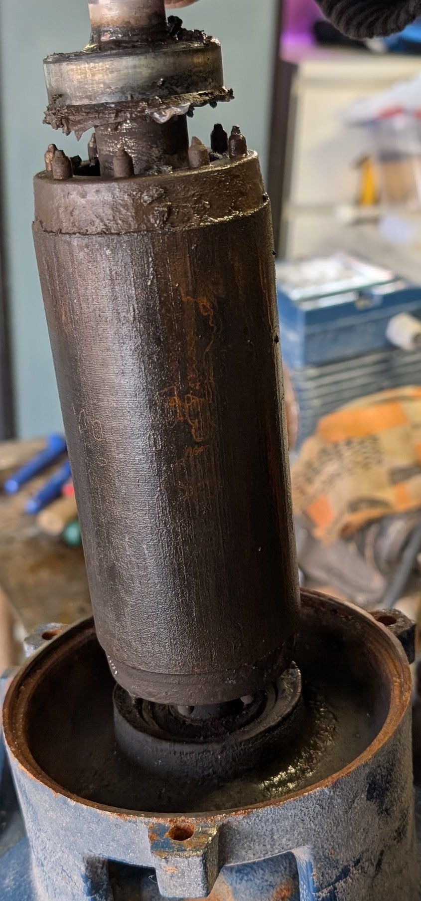 Sme to kuchli, todle to má za sebou, ty sračky nemá smysl řešit. Komplet problitý hovnama, zarezlý ložisko. Úplně teda netuším, jak to nastalo, páč ta hřídel rotoru je tam vidět, je tam mezera mezi čerpadlem a motorem. Ale přesto je to komplet prochcaný a plný sračkovýho blata. (Který navíc pěkně hnusně špiní, ale to bude asi v tom rozpuštěná vazelína z ložisek).