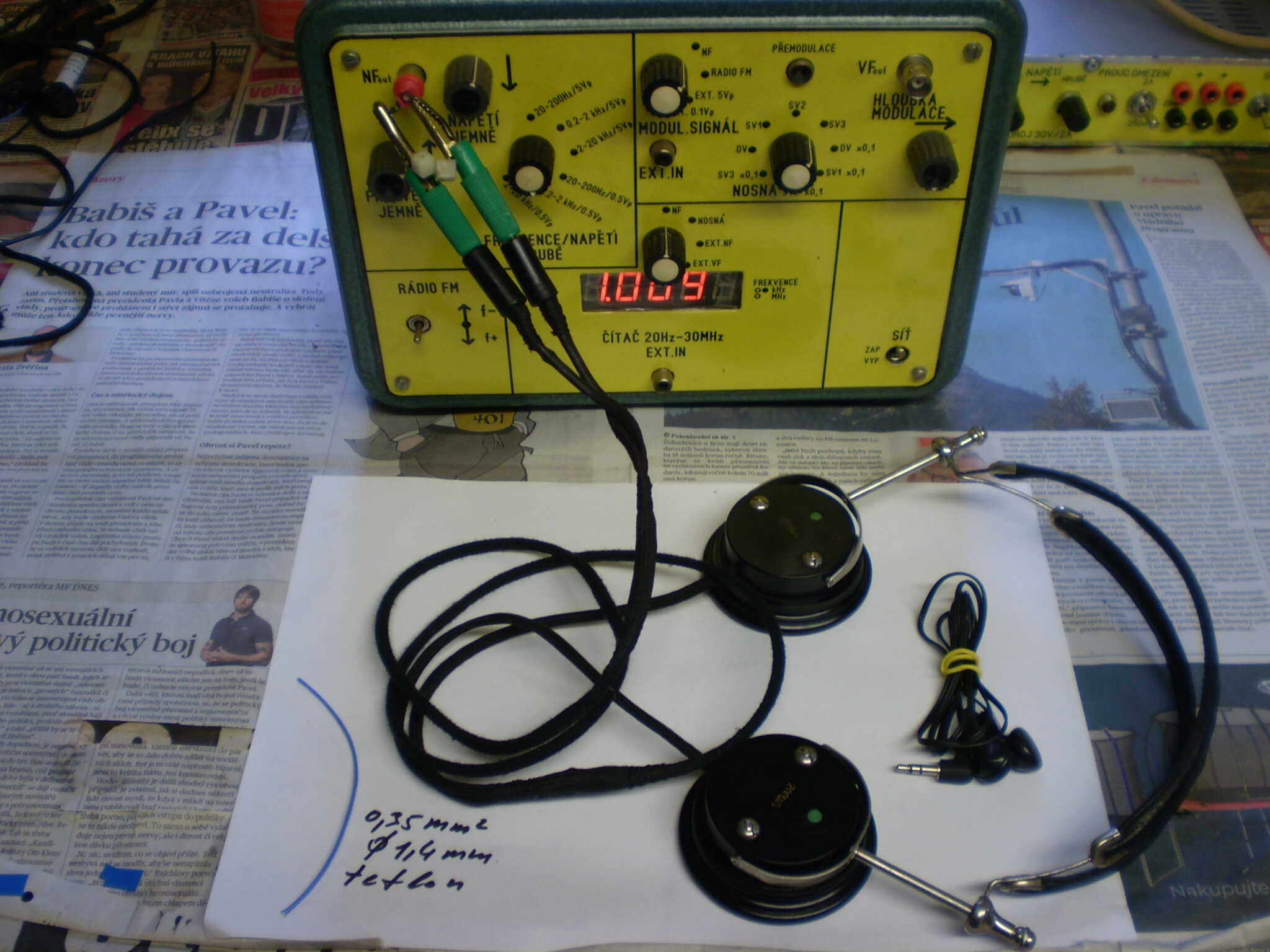 Na nf generátoru hrají obě sluchátka cca stejně , i když je magnet v jednom podstatně slabší než v druhém. Na 1 kHz slyším zvuk od asi 2-3 mV , to ale není směroplatné , protože celkově již mám sluch horší .