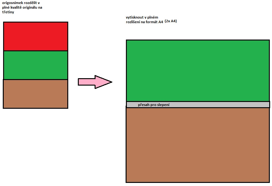 Tisk rozdělených částí obrazu bývá součástí GUI ovladače tiskárny. Jinak je možné použít různé programy, jako např. tento.
