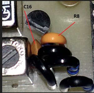 A pak na tvé desce nemohu najít R8, ledaže by to byl ten žlutý kondenzátor (pokud to není jen žlutá bužírka).