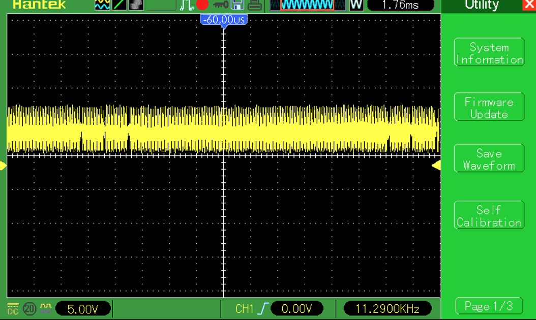 Spíš bys měl na osciloskopu požadovat tohle zobrazení na pinech 15,12 a 7. Ovšem je třeba vypnout režim "Auto" a ovládat parametry ručně.