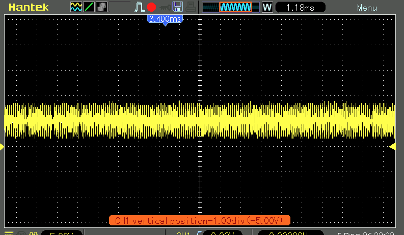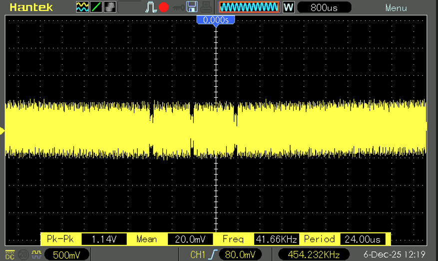 Přidal jsem ještě jeden tantal 47uF mezi VCC a zem, změřil znovu pin 15 a je tam kýžený obrazec- snímek přikládám. na Pinu 12 je cosi podobného , ale ne již tak pěkně ohraničené.