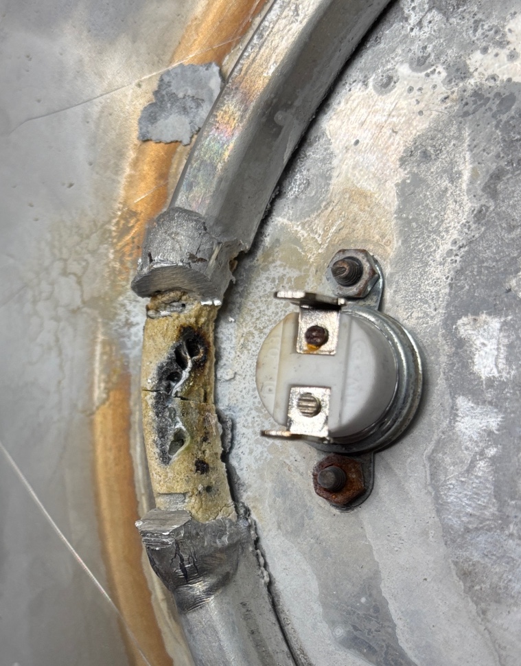 Obal sa roztopil, lebo prúd už nešiel cez špirálu, ale zo skrátenej špirály do uzemneného obalu. Keramika je totiž izolantom len do určitej teploty, potom sa stáva vodivou.