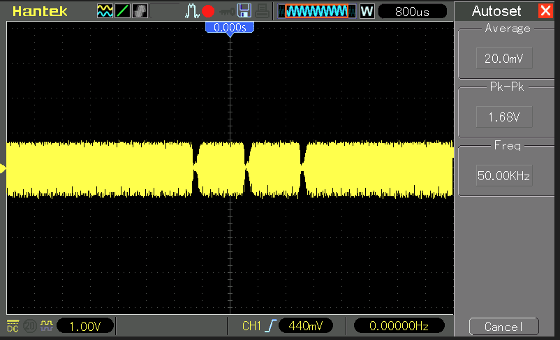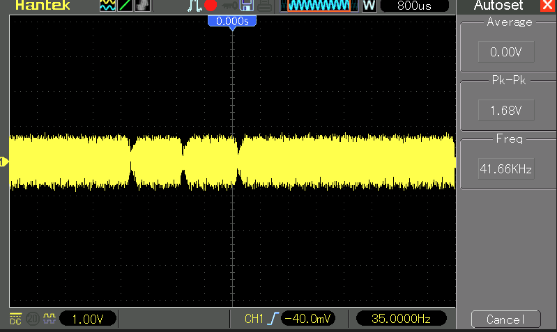 Takže, teď už zmizelo všechno, na kolektoru je jen zubatá čára, na katodě D1 taky jen jakýsi rumrajch, a na mojí dosud největší chloubě - pinu 7 - zmizel modulovaný signál a je tam jen zubatá čára. Z DPS je jen torzo, fakt už nevím jak dál.