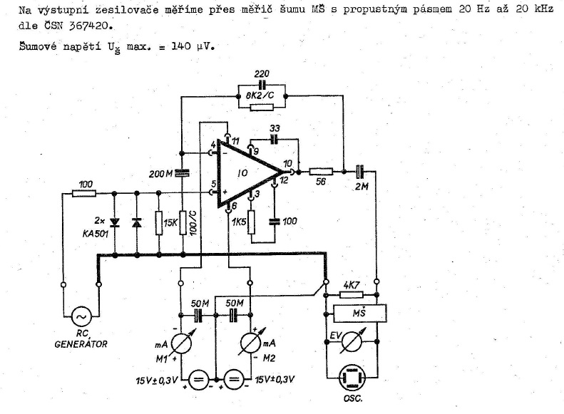 Všiml jsem si ještě v diskusi "Nejlepší audio OZ z produkce n.p. Tesla" právě zmínku o měřicích zapojeních na výběr OZ na šum a našel vždy jen "měříme přes měřič šumu MŠ".