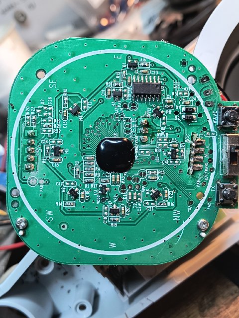 Čidla od ukazatele směru větru, který také nefunguje, jsou přímo na základní desce.