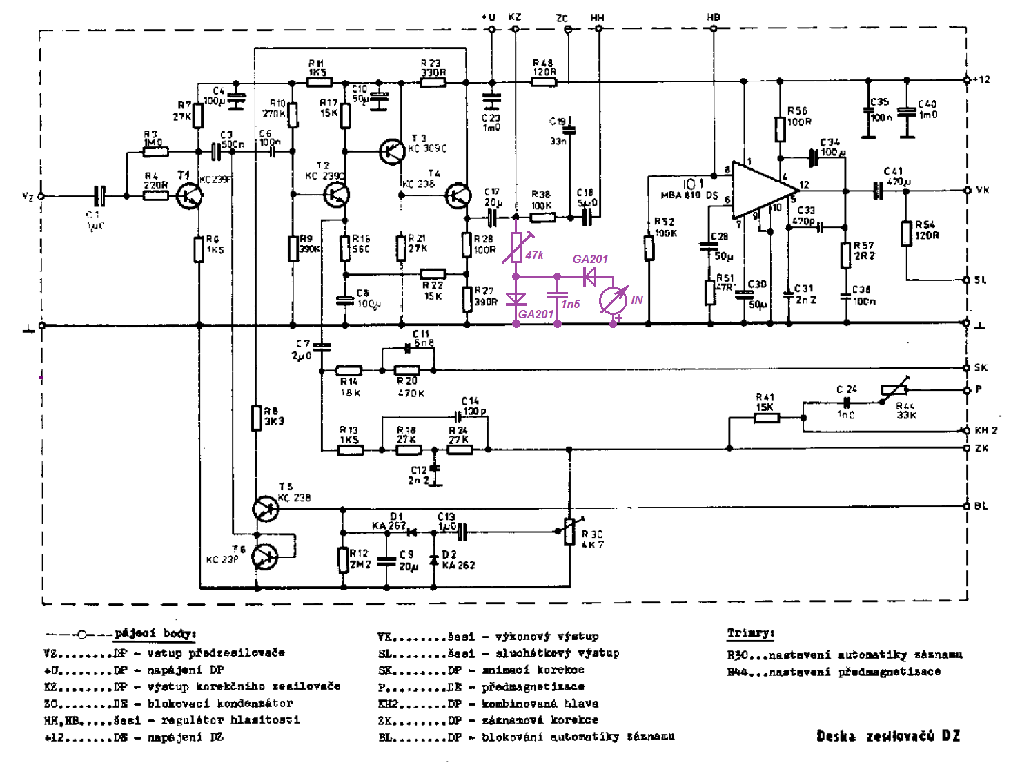 Vezmi signál z výstupu korekčního zesilovače. Tam je při záznamu i snímání.