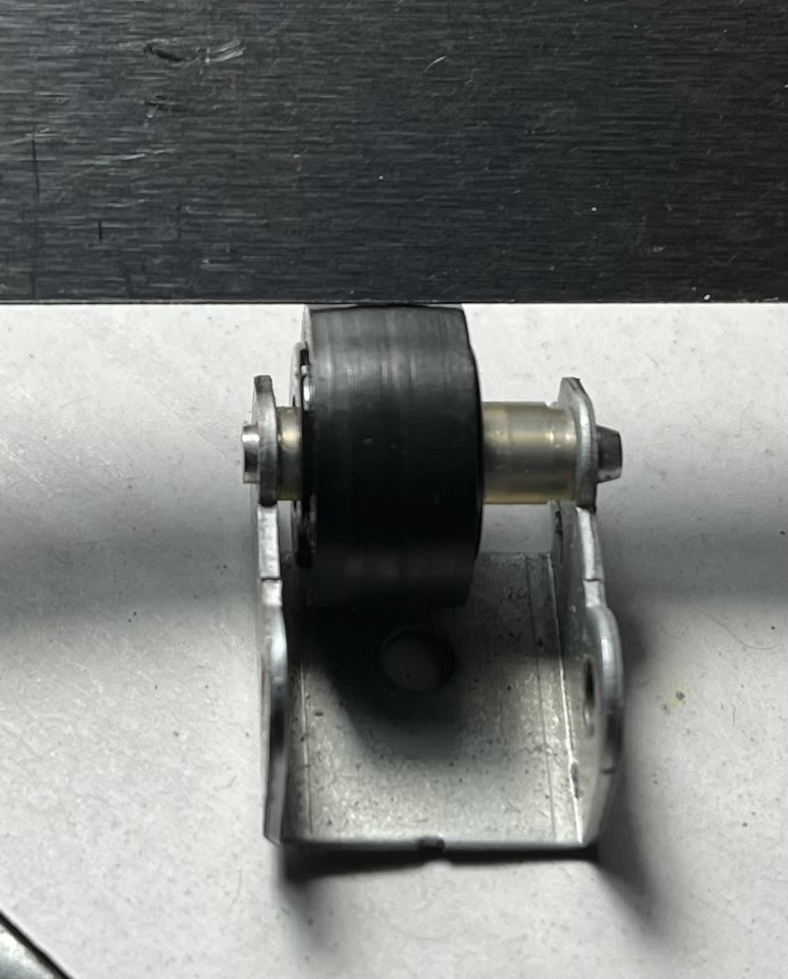 Na té osičce jezdí ve směru osy, jinak vůle v ložisku ne. Asi by to zasloužilo nový roller po těch letech, vizuélně sice vypadá ok, žádné praskliny, je ještě i trochu měkký, a tak jsem jej ošetřil zatím aspoň regumem.