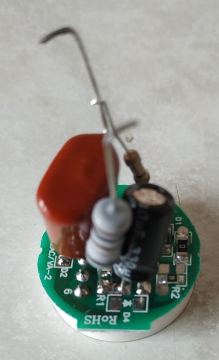 Na vstupnu nožičku zražacieho kondíka je pripojený odpor. Ten bude merací. Odpojiť , vyskúšať