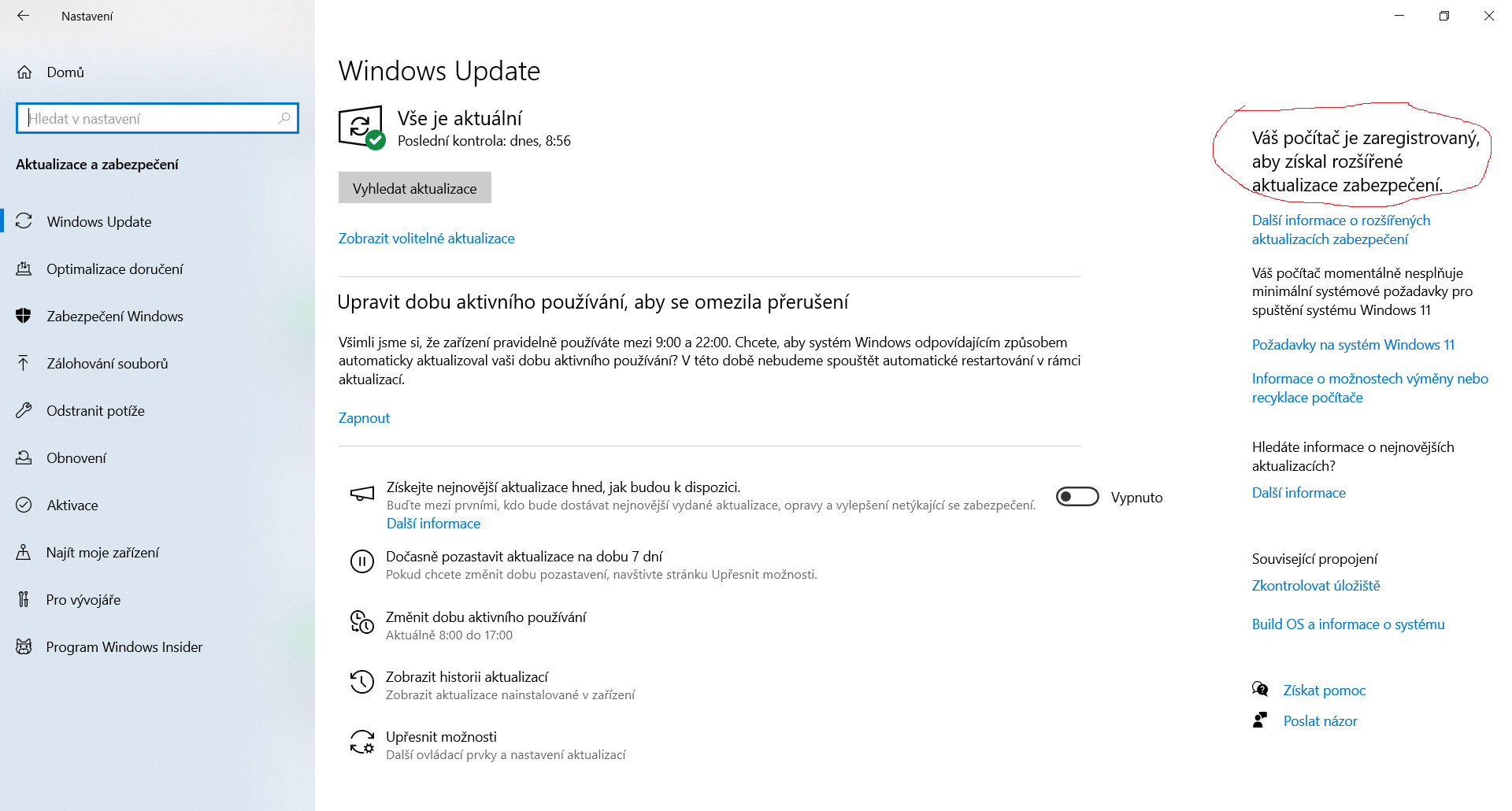 Pokračování v aktualizacích pro Windows 10