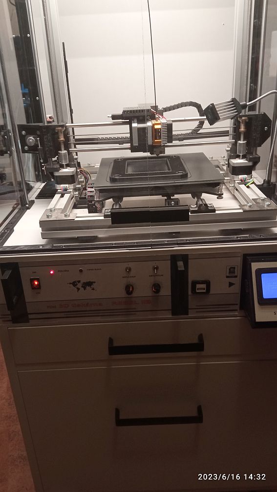 Mám dělanou 3D tiskárnu inspirovanou REBELem, původní tisková plocha 20 x 20cm byla zvětšena na 23 x 23cm, větší se mi nevlezla do rámu. Na fotce je ještě s tou menší.