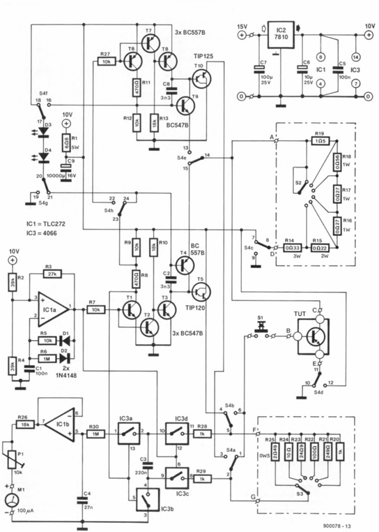 Tak jsem se vrátil k dlouho odloženému projektu pulzního měřiče zesílení výkonových tranzistorů podle KTE 12/1996. V zapojení je použita dělička Ic/Ib, která funguje na principu rozdílu logaritmů daných proudů. Jen pro zajímavost jsem tuto děličku a pak děličku z TI aplikační notičky SNOA641 nasimuloval v LTSpice, ale obě dvě fungují jen od určitého napětí na vstupu, čím vyšší je výsledek (červená je rampa vstupu (Ic), modrá je dělička podle KTE, zelená je dělička podle TI pro dělicí poměry od 1 do 50).