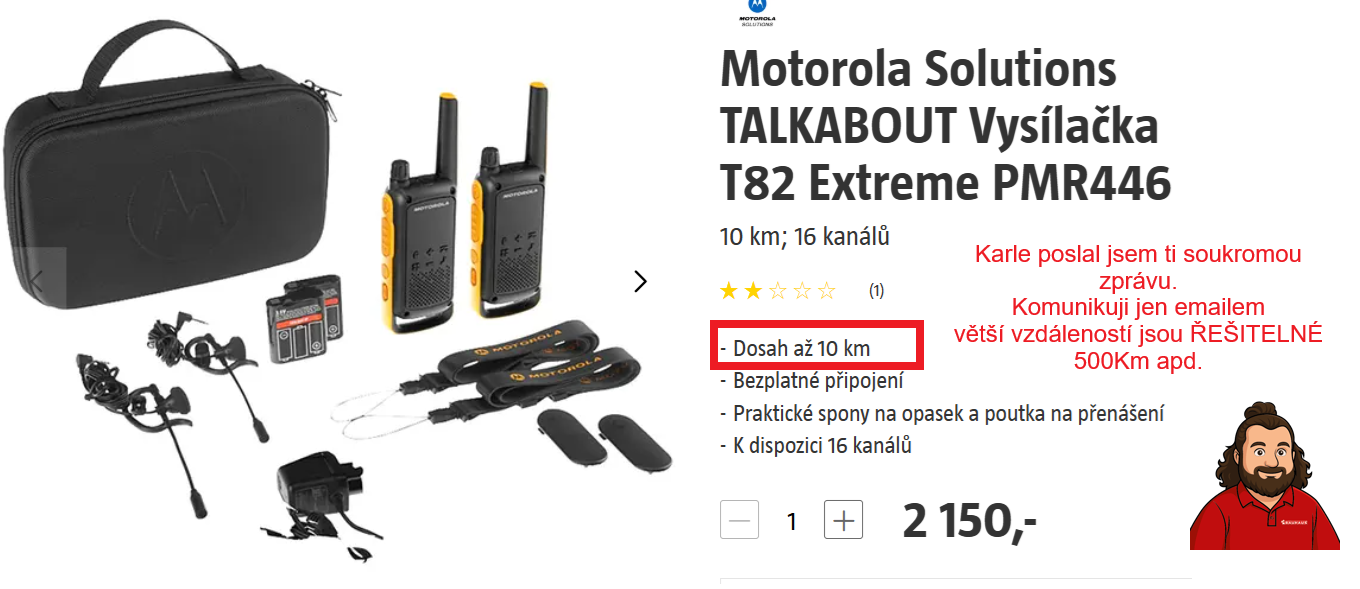No já nevím, kdo je víc trapnej - jestli já, nebo někdo, kdo ani v minulosti nebyl a ani teď není ani schopnej ani ochotnej si vyhledat a přečíst Telekomunikační Řád respektive aspoň z něj vytáhnutý podmínky Generální licence pro užívání pásma 446MHz "PMR" a ptá se opakovaně po bez měsíce 10 letech na úplně stejnou věc, která se už napoprvé ukázala bejt ukázkovou pitomostí - a navíc nepokračuje ve svým původním vlákně, ale založí si ho opakovaně znovu.