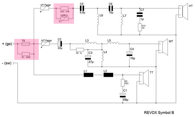 Symbol B (ve kterékoli verzi) jsou dobré, robustní soustavy, které při lidském buzení normální muzikou nemají problém se zesilovačem kolem 300-400W. Pokud je nemíníš používat jako blbec, ochrana výškového repráku je tam nadbytečná. Zvučit jimi diskotéky nebo opilecké párty by byla hrozná škoda. Nicméně pokud by něco takového hrozilo, drobná degradace projevu na výškách bude to nejmenší zlo. Pak není problém opravdu použít pro výšky ochranný termistor, nebo po staru halogenovou žárovku 12V/cca 25W.