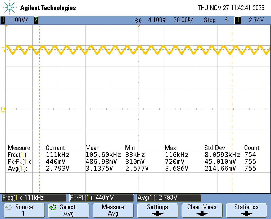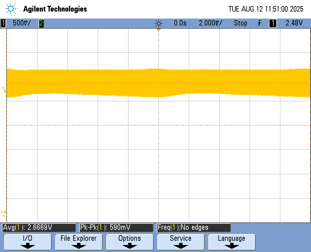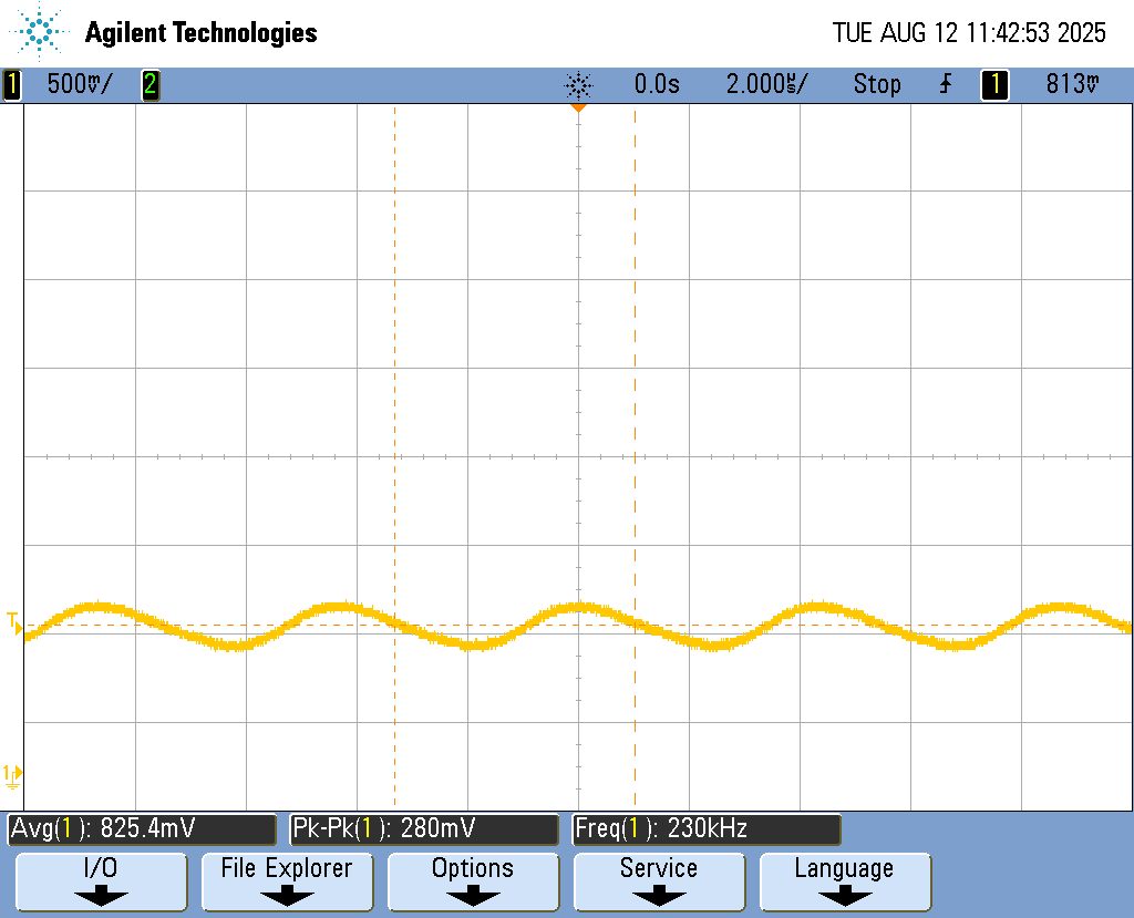 Zacnu tou aku dilenskou lampou Makita DML816. Ma 3 urovne jasu, na vsech je superponovane zvlneni na 230 kHz. Zkousel jsem ji s nabitym i skoro vybitym akumulatorem, ale vysledky byly stejne.