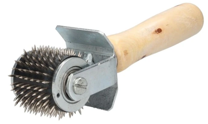 Sháním děrovací kolečko na rukojeti. Je to podobný tomuhle ale má to těch disků vedle sebe asi 5 a hlavně na těch diskách to má asi 2-3 mm dlouhý jehly asi jako jsou na šití. Viděl jsem to na Trubce používat na perforaci plastových fólií. Vyrobí to přejetím po fólii tisíce drobných dírek v několika řadách.